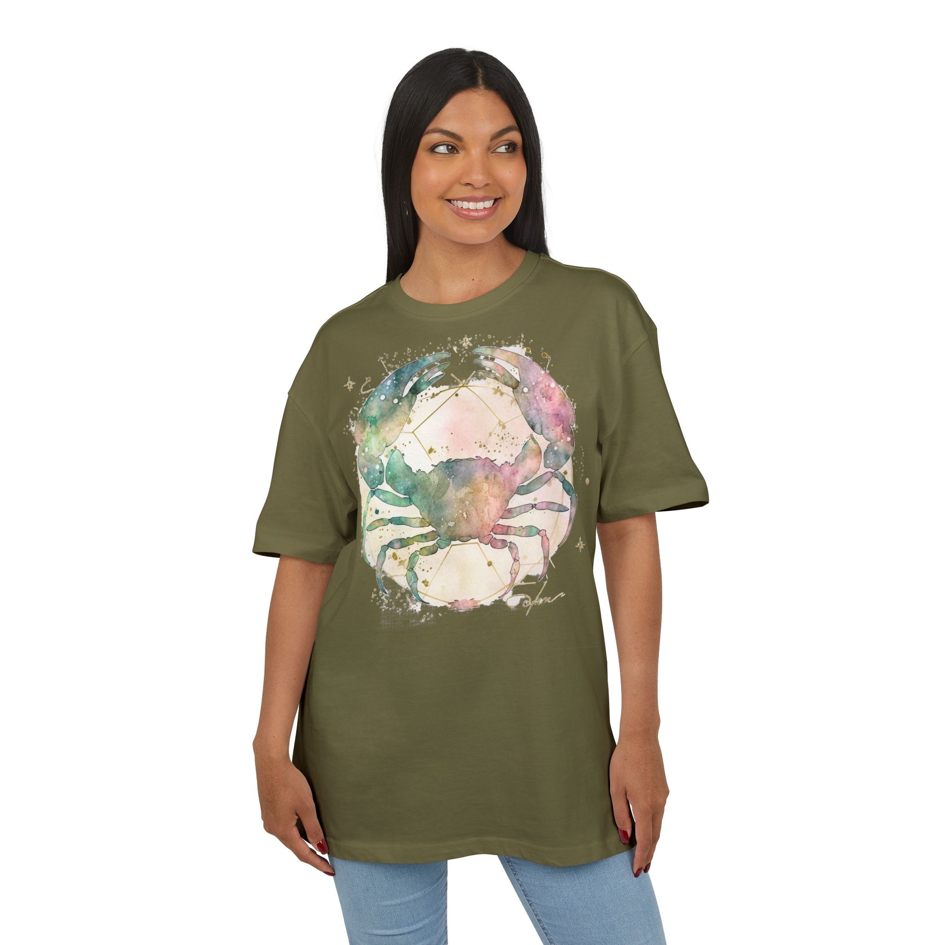 No kuule sää, nyt ollaan semmosen paidan äärellä ettei paremmasta väliä. Tää on just se t-paita, joka pelastaa sun maanantain, perjantain ja kaiken siltä väliltä. Siis hitto, miks kukaan enää käyttäis mitään muuta, ku voi kiskasta päälle tämmösen unisex heavy oversized -teepaidan, joka on niinku suunniteltu niille, joilla on asennetta mut ei tarvetta esittää liikaa. Ja ku tää on Rapu-horoskooppi, niin sekin sanoo jo kaiken. Herkkä mut perkeleen sitkee – ihan niinku meikäläinen, ja varmaan sääkin.
