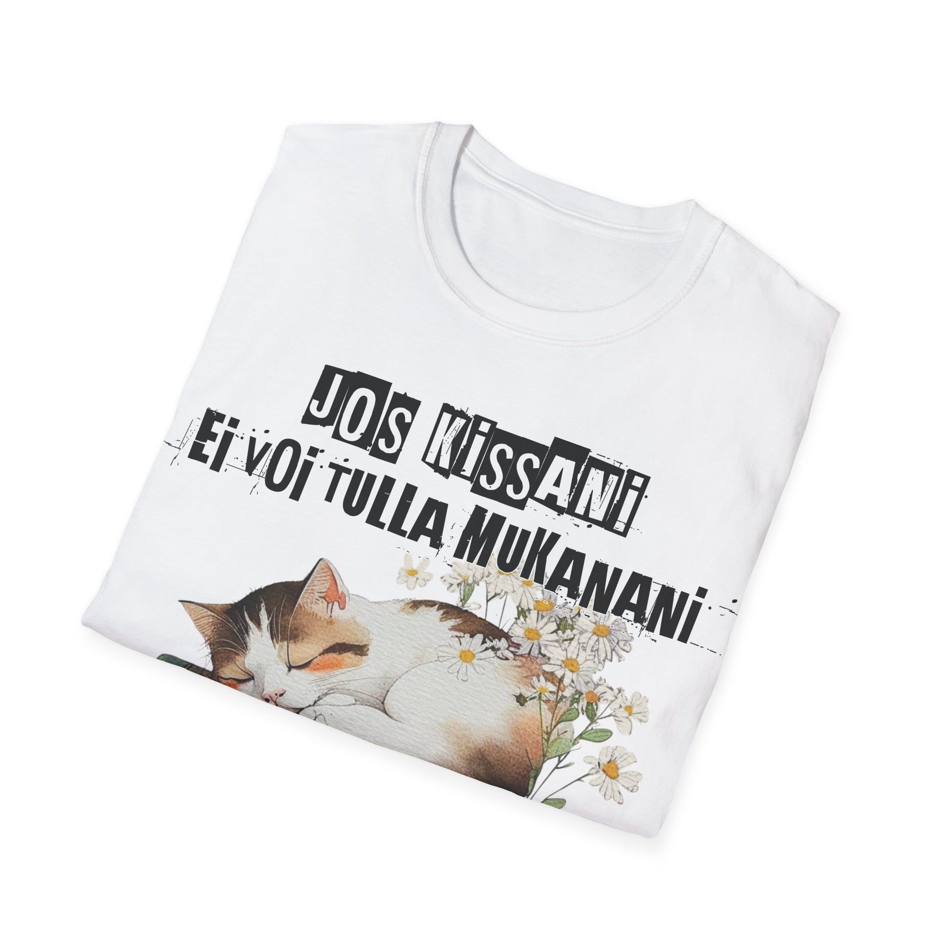 T-Paita - jos kissani ei voi tulla, minä en tule, kissa kirjojen päällä nukkumassa