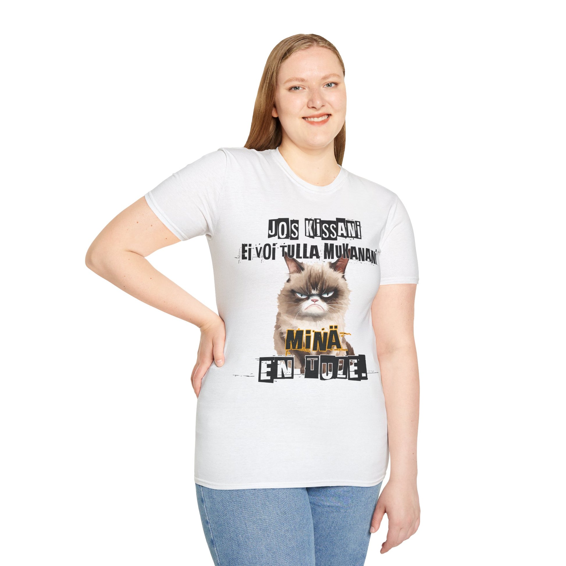 **Pirskatin Pehmee ja Monikäyttönen T-Paita jos kissani ei voi tulla, minä en tule, murjottava kissa