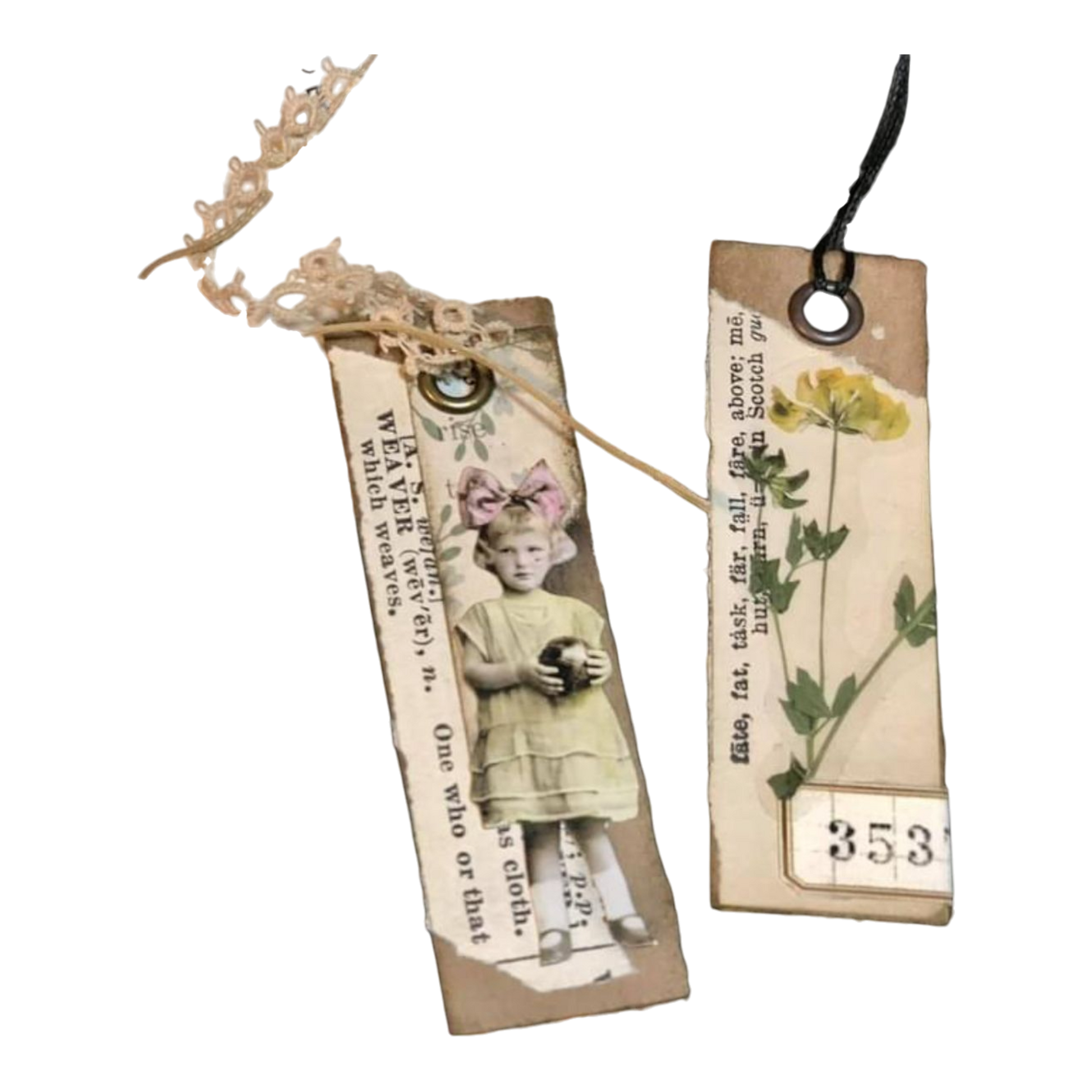 Uniikit kirjanmerkit kellonosilla - miniatyylikirjalla ja nahkakansilla